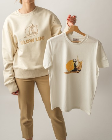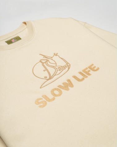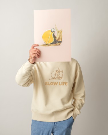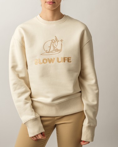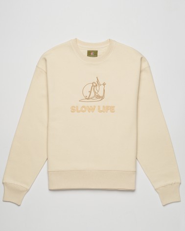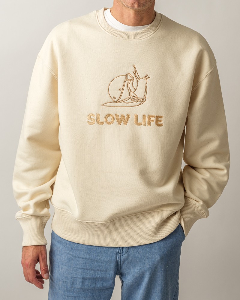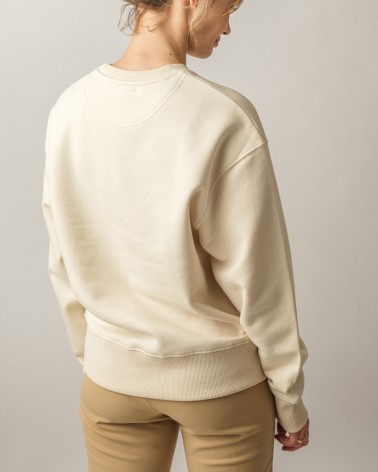Ce sweatshirt en molleton brossé épais et au toucher doux est composé de 85% de coton biologique filé et peigné et de 15% polyester recyclé. Cette une pièce durable et respectueuse.